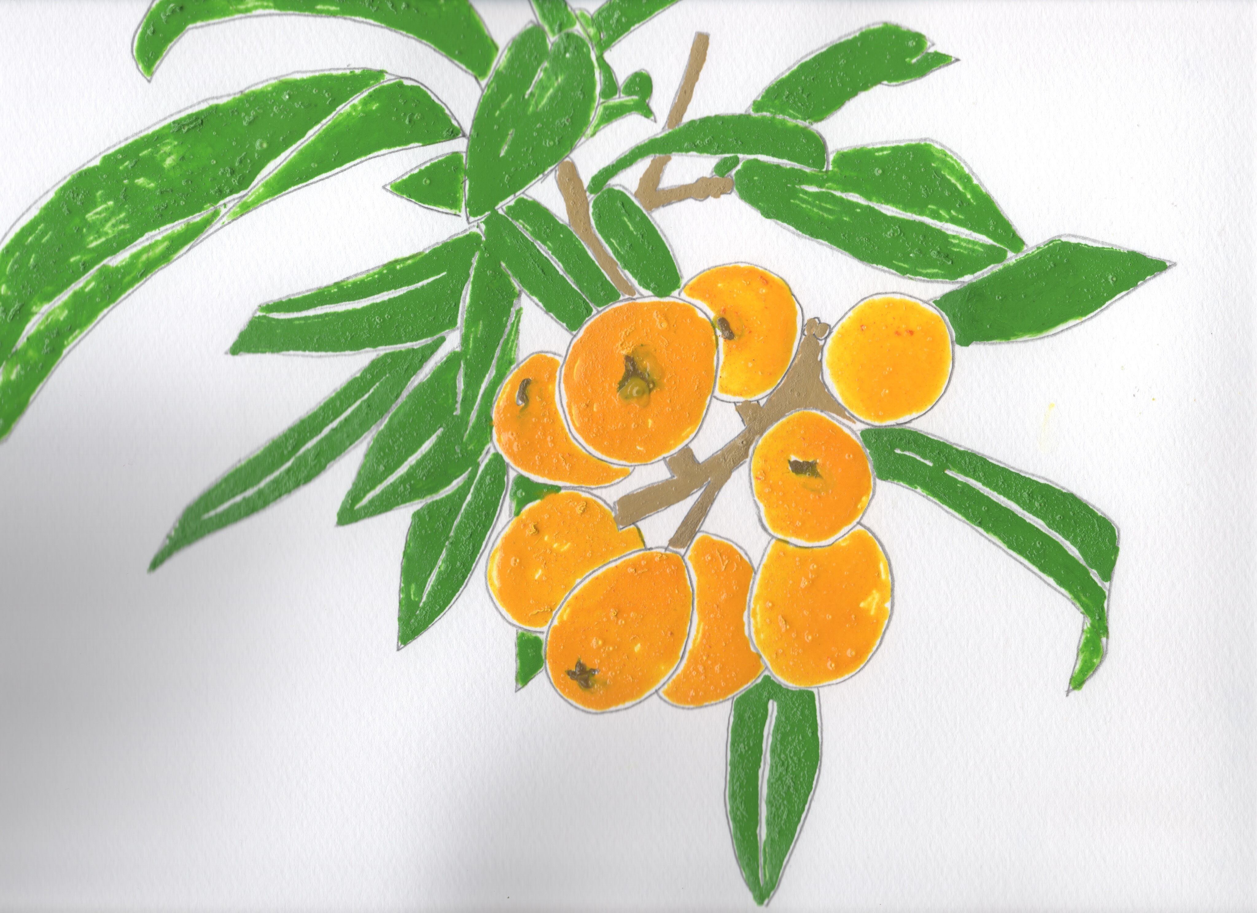 画用紙はホワイトワトソン、画材は透明水彩メディウムとポスターカラーです。