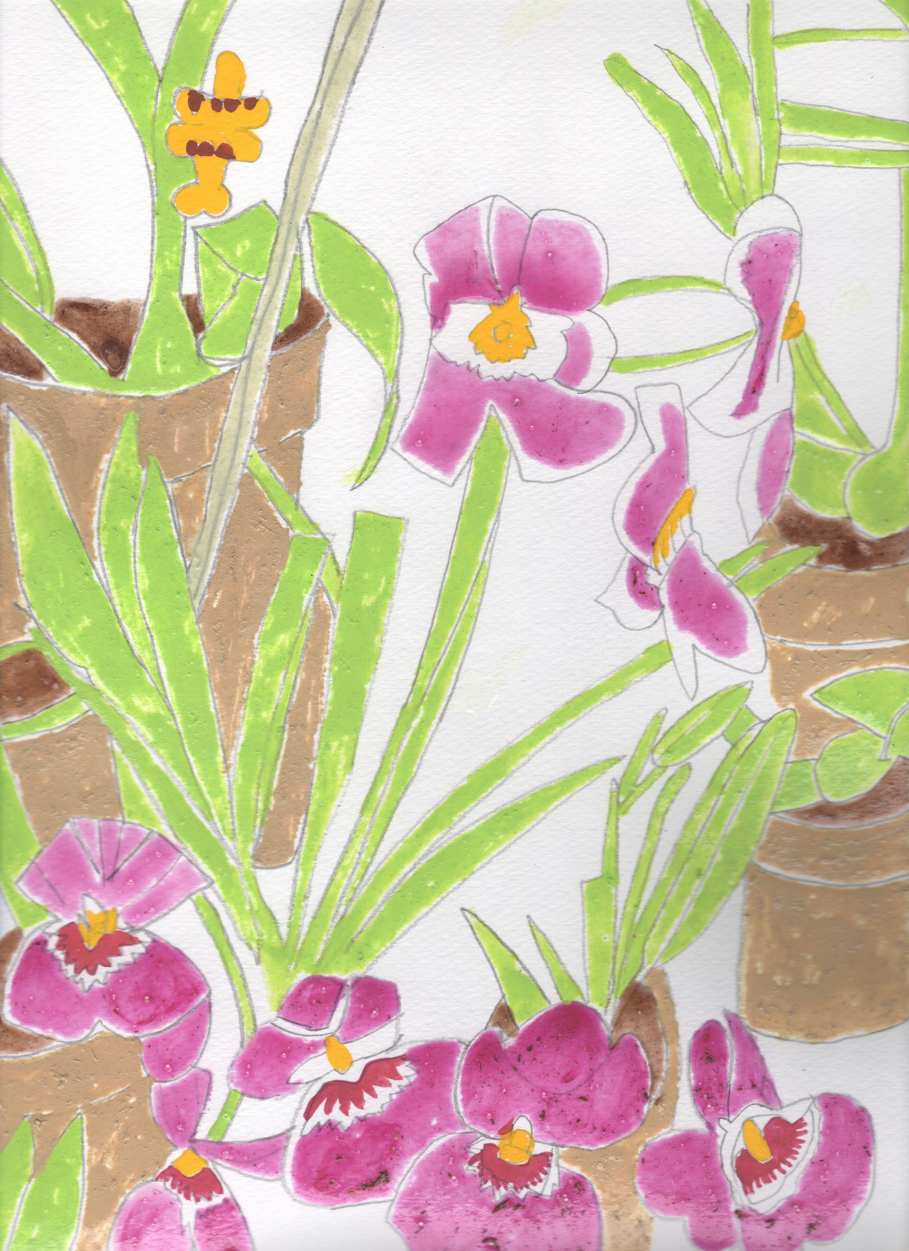 画材はポスターカラー、透明水彩メディウムです。画用紙はホワイトワトソンという紙です。